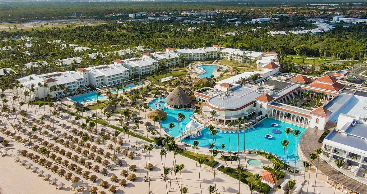 Das 5-Sterne-Hotel liegt direkt am 15km langen weissen Sandstrand Playa Bávaro und ist wie ein karibisches Dorf in die tropische Vegetation eingebettet. Der hauseigene 18-Loch Golfplatz macht das Hotel perfekt.