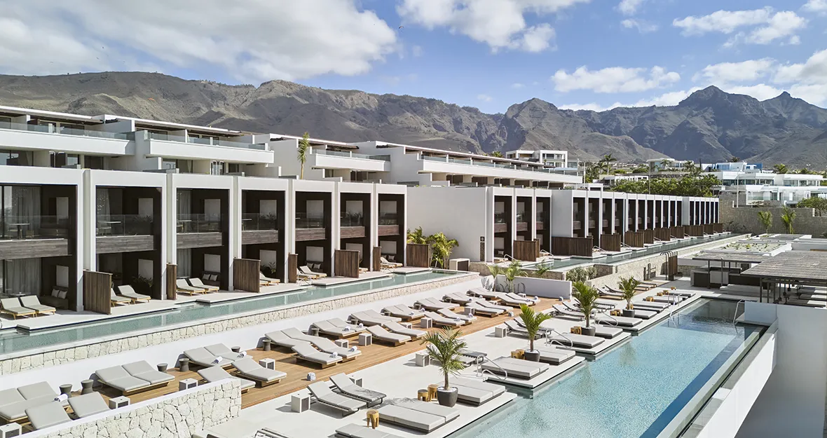 Royal Hideaway Corales Beach - Adults Only bietet 121 luxuriöse Suiten mit Meerblick, Rooftop-Gourmetküche, Spa, Infinitypools und Privatstrand. Nur 3 km vom Golfplatz Costa Adeje entfernt.