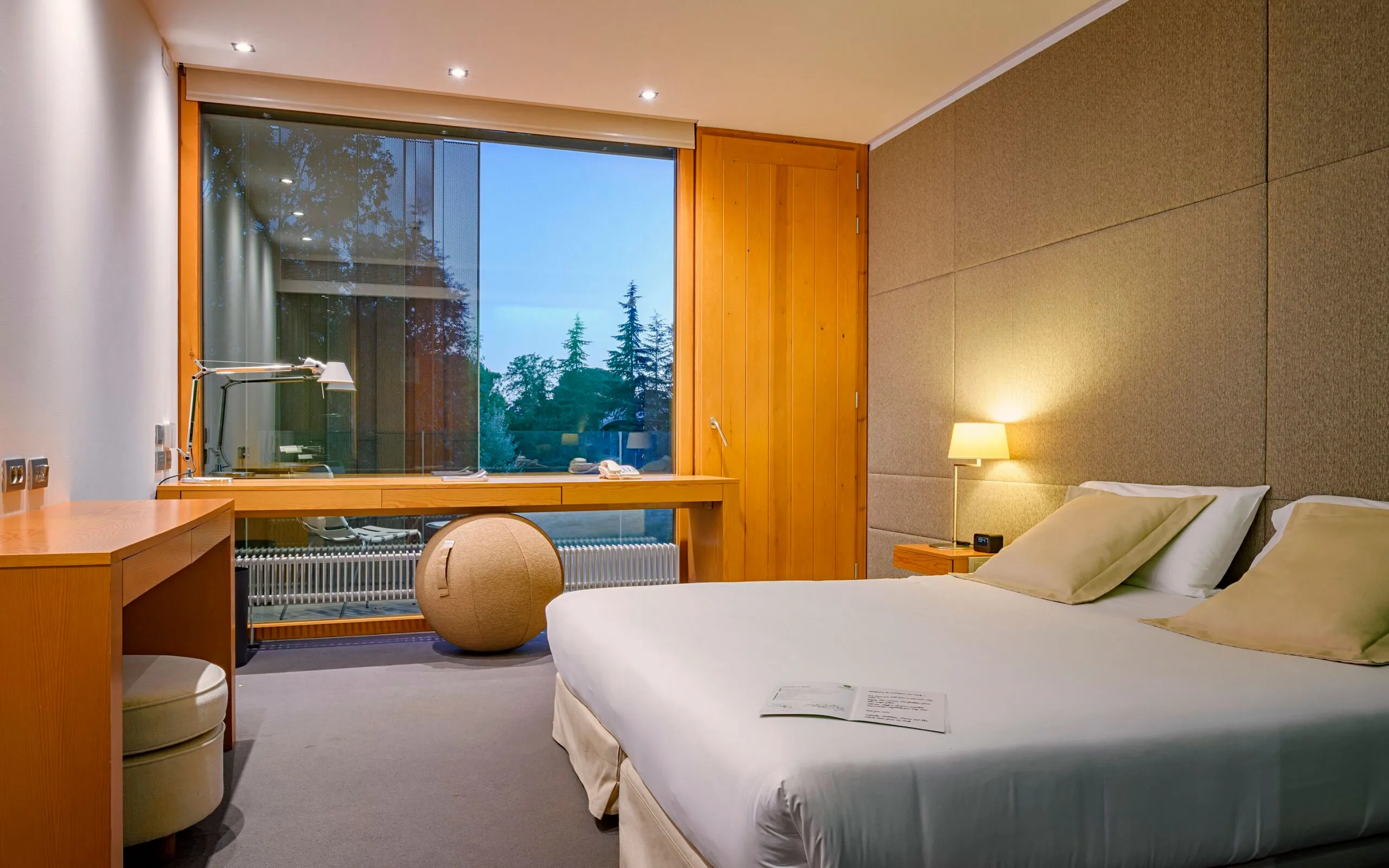 Zimmer: 185 Zimmer mit spektakulärer Aussicht auf die privilegierte Umgebung, lichtdurchflutet und mit Blick auf den Park und den Real Club de Golf El Prat, zum Teil mit Balkon.