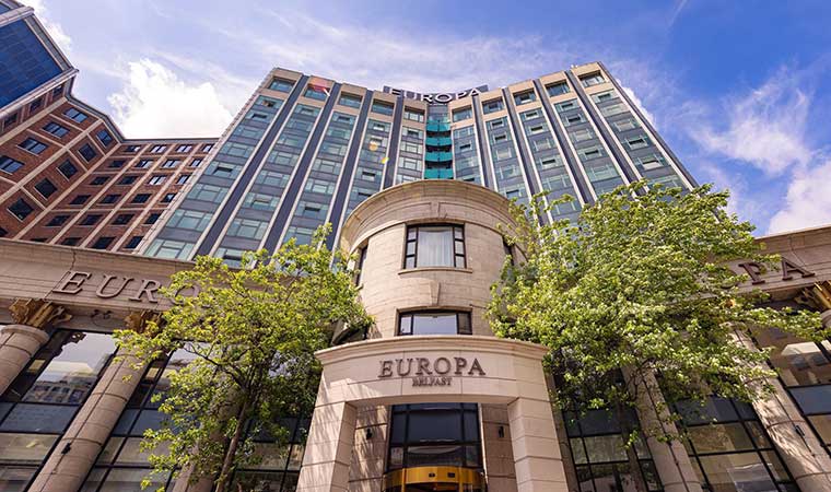 Lage: Das weltberühmte Europa Hotel liegt seit über 50 Jahren in Belfast und wird oft als das Herz der Stadt bezeichnet. Aufgrund seiner erstklassigen Lage ist das Hotel nicht weit von vielen der wichtigsten Sehenswürdigkeiten Belfasts entfernt, darunter das Ulster Museum, das Grand Opera House, die City Hall, die Titanic Belfast, die Waterfront Hall und die SSE Arena.